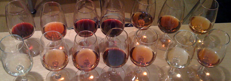Dry to medium dry fortified wine with oxidative aging from Solera system barrels or heat exposure, i. e. Sherry or Madeira